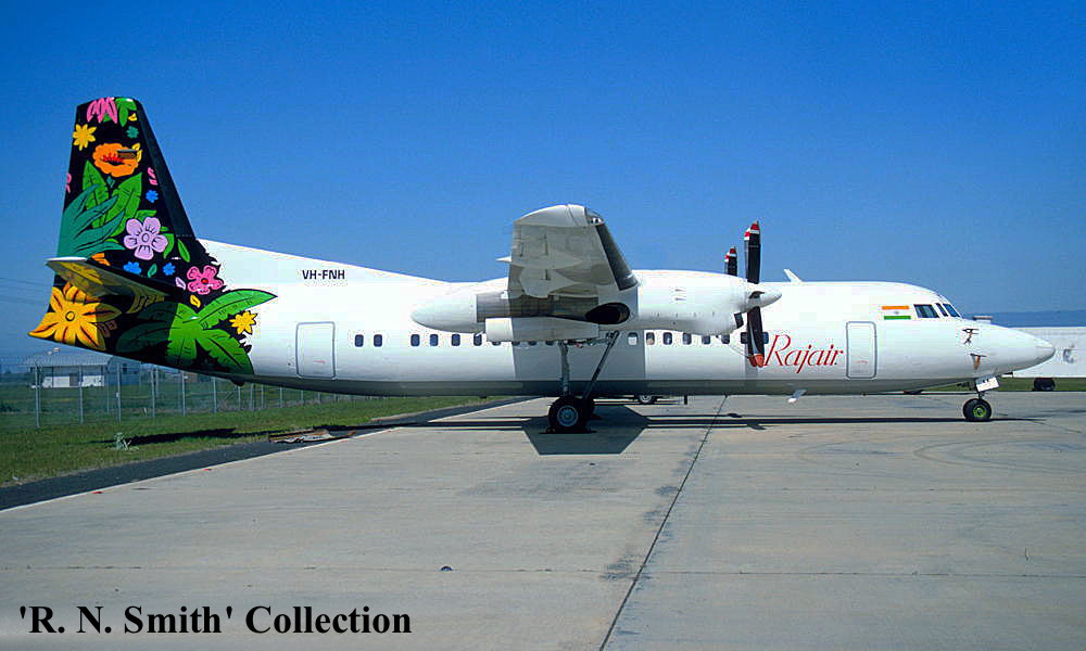 On This Day - August 17, 1993. The Ansett Airlines Fokker F27-050 VH-FNH was rolled-out at Melbourne (Tullamarine) in the 'Rajair' livery, in preparation for its lease to the Indian based airline. Although the Indian registration 'VT-RAC' had been allocated, the lease did not proceed and the aircraft was returned to Ansett service. |
