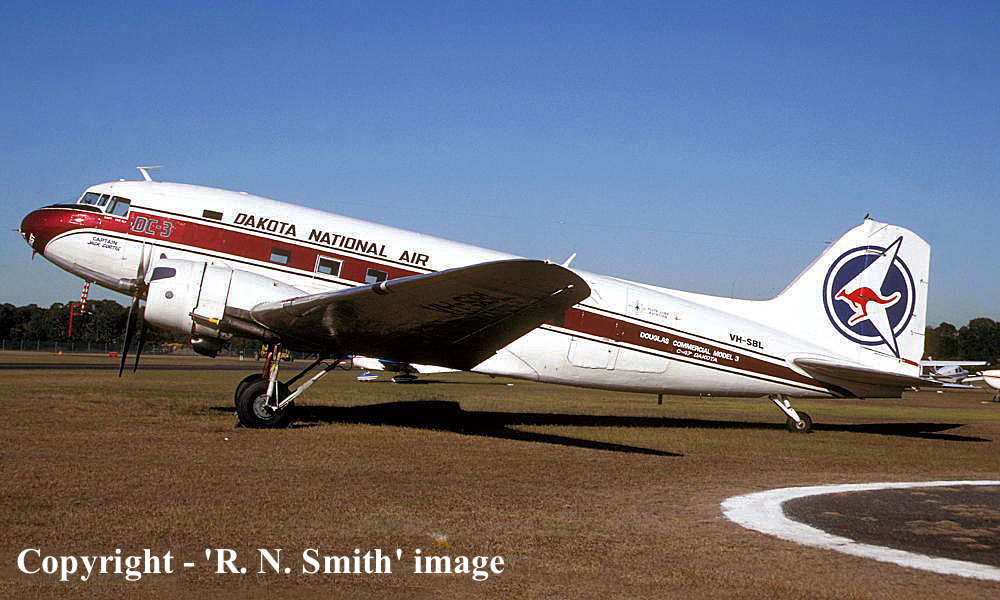 The Air Rambler (Australia) Pty Ltd / 'DC-3 Queensland' Douglas C-47A-1-DK VH-SBL was sold to P. P. Starr (N.S.W.), t/a 'Dakota National Air'.