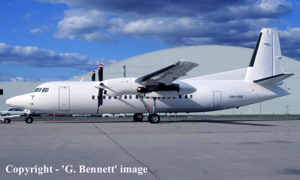On This Day - May 07, 1993. The Ansett Fokker F27-050 VH-FNE was ferried from Brisbane to Melbourne (Tullamarine) in an 'all-white' livery for storage pending its possible sale to Rajair, India. Although the aircraft was subsequently repainted into the standard 'Rajair' livery, the sale did not proceed. |