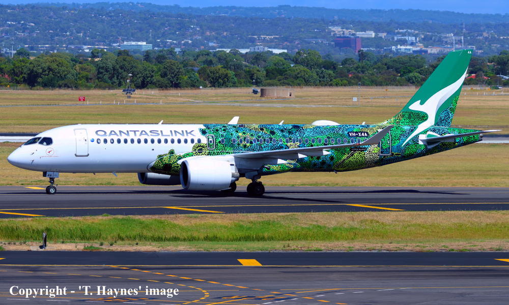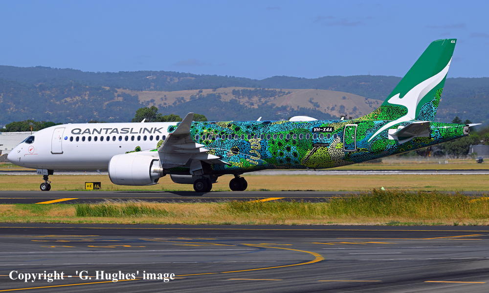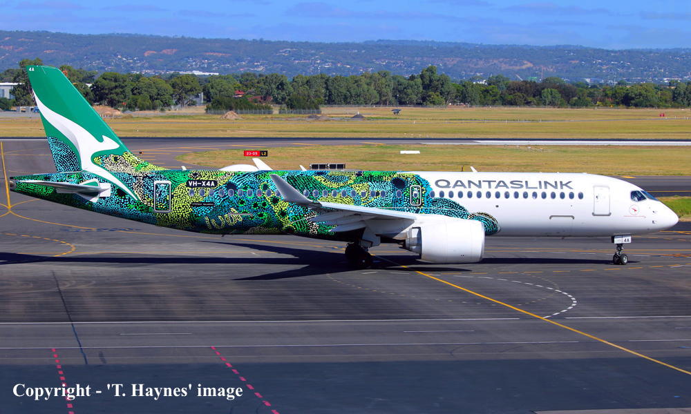 The original order for twenty aircraft was placed by Qantas Airways for operation by QantasLink - June 30, 2022 An additional nine airframes were added to the original order - June 16, 2023 These aircraft were to be built by Airbus Canada Limited Partnership at Montreal (Mirabel) This airframe was the first to be delivered from the original order It was observed at the Airbus Canada plant, Montreal (Mirabel) - November 14, 2023 Around 100 painters worked on the livery for some two weeks It was based on the artwork of senior Pitjantjatjara artist Maringka Baker It features over 20,000 dots, telling the 'Dreaming' story of two sisters who travelled across remote Australia together to find their way home The aircraft is named after the artwork: 'Minyma Hutjara Tjuhuapa' - The Two Sisters Creation Story It was observed undergoing engine runs and taxi-checks as 'ABK353' - November 22, 2023 It was observed undergoing taxi and rejected take-off checks as 'ABK353' - November 27, 2023 First flown at Montreal (Mirabel - 15:28 CEST) - (Mirabel - 18:22) as 'C-FPGP' - November 30, 2023 Flight time: 2 hours 54 minutes Powered by Pratt & Whitney PW1524G-3 engines Test flown at Montreal (Mirabel - 15:08 CEST) - (Mirabel - 17:25) as 'AIB353' - December 01, 2023 Flight time: 2 hours 17 minutes Test flown at Montreal (Mirabel - 12:28 CEST) - (Mirabel - 13:30) as 'AIB353' - December 05, 2023 Flight time: 1 hour 2 minutes Test flown at Montreal (Mirabel - 10:32 CEST) - (Mirabel - 13:07) as 'AIB353' - December 10, 2023 Flight time: 2 hours 35 minutes Entered onto the Australian Aircraft Register as VH-X4A - December 12, 2023 Registered to Qantas Airways Ltd, Sydney Leased to National Jet Systems Pty Ltd, Adelaide, South Australia as the registered operator for QantasLink Departed Montreal (Mirabel - 10:25 CEST) on the delivery flight to Australia as QJE6075 - December 16, 2023 It arrived Sydney (Kingsford Smith - 12:06 AEDT) on completion of the delivery flight - December 20, 2023 Delivery route: Montreal - Vancouver (night stop) - Honolulu (night stop) - Nadi (2 night stop) - Sydney It has carried out 69 check / training flights on the eastern seaboard - December 21, 2023 - February 21, 2024 Departed Sydney (Kingsford Smith - 13:51 AEDT) on a special 'inaugural flight' to Ayres Rock (15:11 CAT) as Flight QJE6215 - February 22, 2024 Flight time: 2 hours 50 minutes Operated Flight QJE6216 Ayres Rock (17:33 CAT) - Melbourne (Tullamarine - 22:29 AEDT) - February 22, 2024 Flight time: 3 hours 27 minutes Entered service Melbourne (Tullamarine - 12:33 AEDT) - Canberra (13:18 AEDT) as QF1268 - March 01, 2024 Operated the airline's inaugural 'Airbus A220' service from Melbourne (Tullamarine) - Coffs Harbour (18:38 AEDT) as QF1298 - October 28, 2024 Operated the airline's inaugural 'Airbus A220' service from Brisbane - Adelaide (West Beach) return - March 03, 2026 Flight QF1287 Brisbane (12:26 AEST) - Adelaide (15:21 local) Flight QF1288 Adelaide (16:35 local) - Brisbane (18:07 AEST) Current with QantasLink |