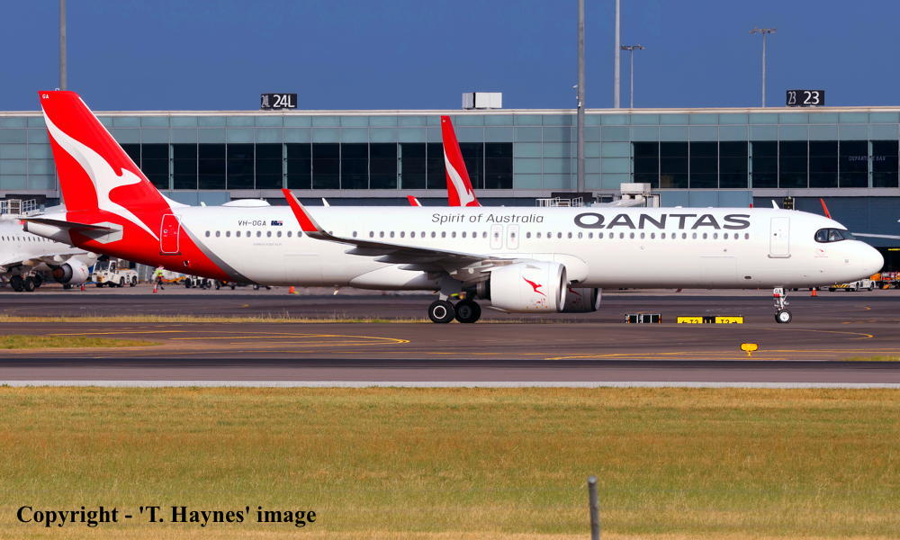 This aircraft was ordered new by Qantas Airways - ? It was the airline's 1st Airbus A321-271(XLR) It was built by Airbus in Germany at the Hamburg (Finkenwerder) plant - 2024 / 2025 Powered by International Aero Engine PW1133GAR-JM turbo-fan engines It was observed at Hamburg (Finkenwerder) as 'D-AXXE' in primer and without engines installed - November 25, 2024 It was observed at Hamburg (Finkenwerder) in the 'Qantas' livery and without engines installed - February 15, 2025 Entered onto the Australian Aircraft Register as VH-OGA - March 17, 2025 Registered to Qantas Airways Limited, Mascot, Sydney It was observed at Hamburg (Finkenwerder) in the 'Qantas' livery and with the engines installed - March 21, 2025 Engine run, taxi check and perforrmed as '12323R2' - April 04, 2025 Engine run, taxi check and rejected take-off perforrmed (08:26 UTC) as '12323R3' - April 08, 2025 First test flight (T1) flown at Hamburg (13:39 - 17:07 UTC) as 'D-AXXE' (AIB323A) - April 08, 2025 Engine run and taxi check performed as 'D-AXXE' - May 14, 2025 Taxi-check and rejected take-off performed - June 04, 2025 Second test flight (T2) flown at Hamburg (07:04 - 08:18 UTC) as 'D-AXXE' (AIB323B) - June 05, 2025 Third test flight (T3) flown at Hamburg (Finkenwerder 07:04 - 08:18 UTC) as 'D-AXXE' (AIB323C) - June 17, 2025 Route: Hamburg (Finkenwerder) - Hamburg (Helmut Schmidt) - Hamburg (Finkenwerder) Fourth test flight (C1) flown at Hamburg (Finkenwerder 07:19 - 09:18 UTC) as 'D-AXXE' (AIB323CD) - June 24, 2025 Route: Hamburg (Finkenwerder) - Hamburg (Helmut Schmidt) - Hamburg (Finkenwerder) Accepted by Qantas Airways at Hamburg (Finkenwerder) - June 30, 2025 The aircraft was named 'Great Ocean Road' Departed Germany (Hamburg - 07:01 UTC) on the delivery flight to Australia as QF6041 - June 30, 2025 It arrived at Sydney (Kingsford Smith - 09:45 AEST) on completion its flight from Germany - July 02, 2025 Delivery route: Hamburg (Finkenwerder) - Bangkok - Sydney Flight time: Hamburg - Bangkok (11 hours 7 minutes) - Bangkok - Sydney (9 hours 10 minutes) Prior to entering commercial service it operated approximately 242 test and training flights Operated its first revenue service as Flight QF1321 - September 25, 2025 This flight number was used to celebrate the first commercial service of this new aircraft type Route: Sydney (Kingsford Smith - 09:12 AEST) - Melbourne (Tullamarine - 11:32 AEST) Before landing at Melbourne the aircraft made a double circuit over the Great Ocean Road at 3,000 feet Current with Qantas Airways, Australia |