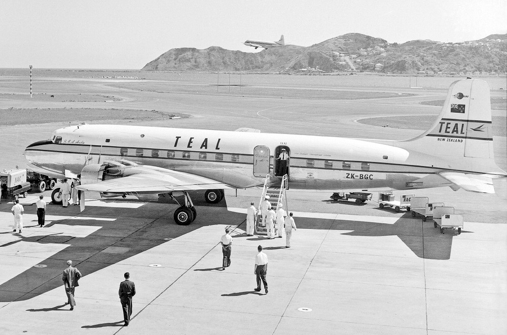 ZK-BGC. TEAL - 'RMA Arahia' in the original livery at Wellington Airport, February 09, 1960.