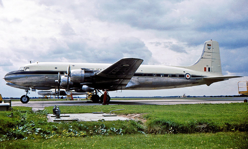 NZ3633. Royal New Zealand Air Force - in the standard livery at Mildenhall Airport, August 16, 1962.