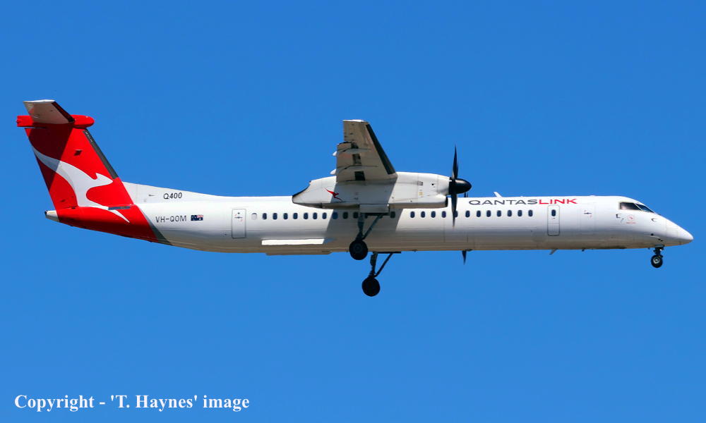 VH-QOM. Bombardier DHC-8-402Q. c/n 4217. Was also registered as: C-FRLL. |