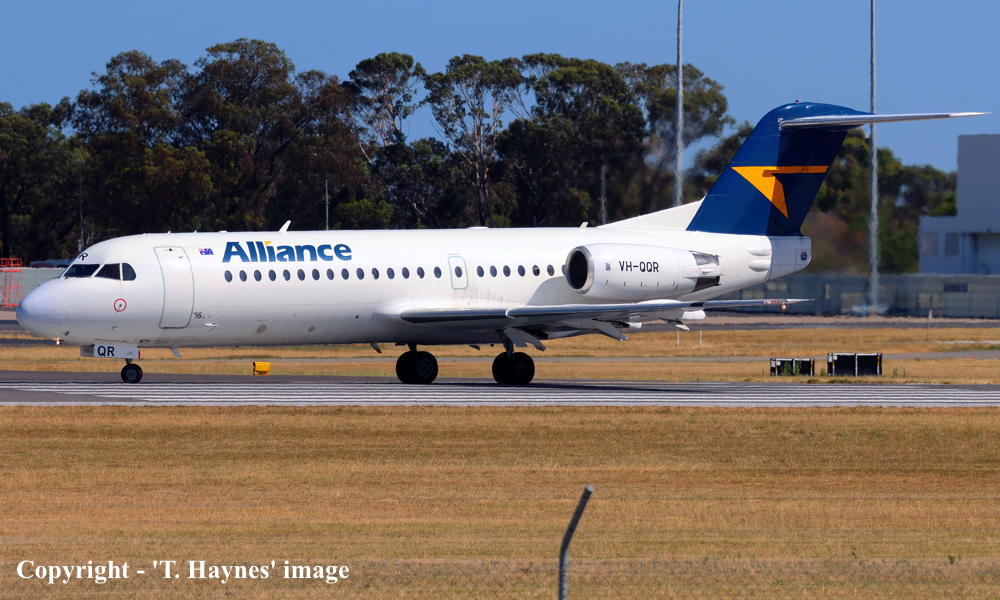VH-QQR. Fokker F28-070. c/n 11564. Was also registered as: HA-LMA; YR-KMA. |