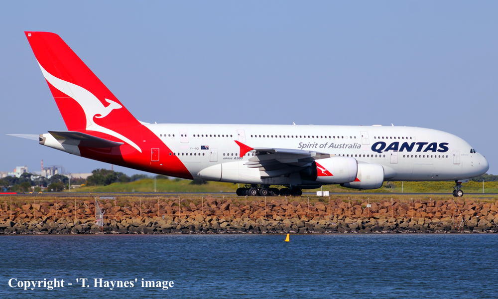 VH-OQI. Qantas Spirit Of Australia - 'David Warren' in the 'New Roo' livery at Sydney Kingsford Smith Airport, March 10, 2014. (T. Haynes Copyright Image 0380-086.) |