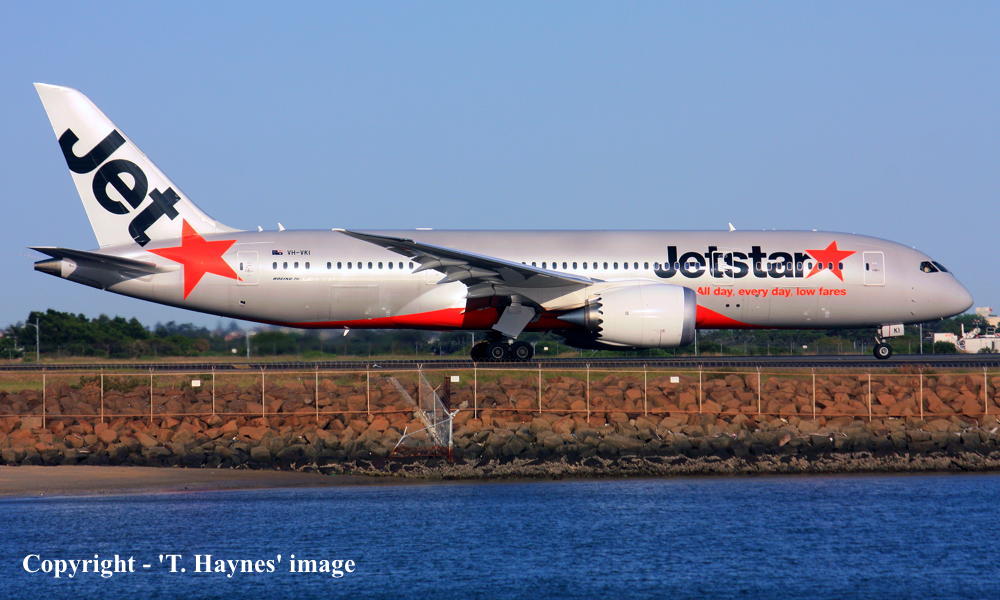 VH-VKI. Jetstar - in the standard livery at Sydney Kingsford Smith Airport, November 20, 2016. (T. Haynes Copyright Image 4680-219.) |