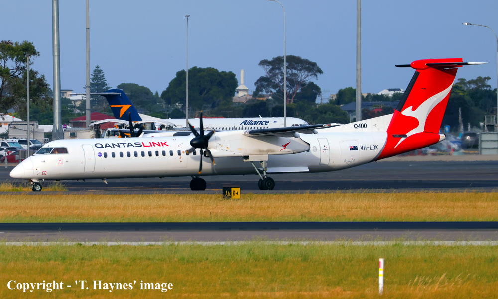 This was the sixth of eight aircraft ordered new by Qantas Airways for operations by Qantas Link - July 21, 2010 Powered by Pratt & Whitney Canada PW150A turboprop engines Entered onto the Canadian Aircraft Register as C-GOAO - May 17, 2012 Registered to Bombardier Incorporated, Downsview, Ontario, Canada It was observed at Downsview in primer as 'C-GOAO' - June 14, 2012 Accepted by Qantas Airways at Toronto (Downsview) - July 23, 2012 Departed Toronto (Downsview) on the delivery flight to Australia as BBA5 - July 27, 2012 It arrived at Canberra on completion of the delivery flight from Canada - August 03, 2012 Delivery route: Toronto - Winnipeg - Yellowknife - Fairbanks - Nome - Magadan - Tokyo - Saipan - Port Moresby - Cairns - Canberra Cancelled from Canadian Aircraft Register - August 08, 2012 Entered onto the Australian Aircraft Register as VH-LQK - August14, 2012 Registered to Qantas Airways Ltd, Mascot, Sydney Leased to Sunstate Airlines (Queensland) Pty Ltd as the registered operator Operated its first revenue service Sydney (Kingsford Smith) - Canberra as QF1460 - August 23, 2012 The aircraft was originally unnamed The aircraft was later named 'Bourke' Current with QantasLink |