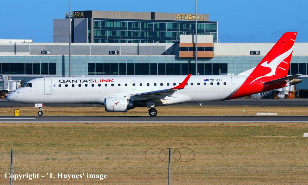 This aircraft was ordered by U. S. Airways - ? Rolled off the production line at Sao Jose dos Campos, Brazil - March 2007 First flown as 'PT-SJL' - March 2007 Powered by General Electric GE34-10E6 engines Entered onto the United States Aircraft Register as N946UW - March 21, 2007 Registered to U. S. Airways, Pittsburg, PA Accepted by U. S. Airways at Sao Jose dos Campos - March 21, 2007 U. S. Airways was absorbed by American Airlines - April 08, 2015 Reregistered as N953UW - December 30, 2015 Registered to American Airlines The aircraft was withdrawn from service and stored at Pittsburgh - March 27, 2020 It was ferried Pittsburgh - Rowell, New Mexico for storage - April 15, 2020 Registered to TVPX Aircraft Solutions Inc Trustee, North Salt Lake City, Utah - October 05, 2021 Ferried Roswell - San Jose (Costa Rica) for storage - June 26, 2022 The aircraft was repainted into the 'QantasLink' livery at San Jose in preparation for lease / sale Test flown San Jose - San Jose as QQ9812 - October 07, 2022 Departed San Jose (Costa Rica) on the delivery flight to Australia as QQ9812 - October 10, 2022 Experienced mechanical problems at San Diego when preparing to take-off - October 10, 2022 Departed San Diego on resumption of the delivery flight - October 17, 2022 It arrived at Brisbane (14:54 local) on completion of the delivery flight from Costa Rica - October 19, 2022 Delivery route: San Jose - San Diego - Honolulu - Majuro - Brisbane Cancelled from the United States Aircraft Register - October 24, 2022 Entered onto the Australian Aircraft Register as VH-XVT - November 07, 2022 Registered to Bravo Airlines Pty Ltd, Brisbane Leased to Alliance Airlines Pty Ltd, Brisbane as the registered operator Test flown Brisbane - Brisbane as QQ981 - December 01, 2022 This aircraft is operated by Alliance for QantasLink commencing - December 03, 2022 Operated first QantasLink revenue service Brisbane - Adelaide (West Beach) as QF1929 - December 03, 2022 Current with Alliance Airlines / QantasLink |