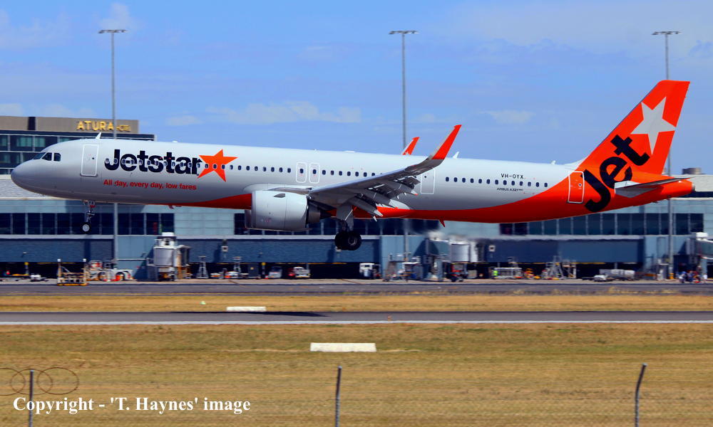 VH-OYX. Jetstar - in the revised livery at Adelaide West Beach Airport, January 02, 2026. (T. Haynes Copyright Image 0321-722.) |