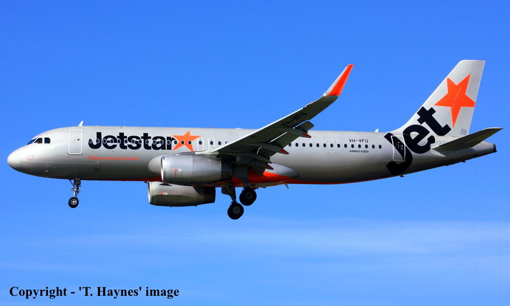 VH-VFU. Jetstar - in the standard livery at Melbourne Tullamarine Airport, December 03, 2016. (T. Haynes Copyright Image 0320-919.) |