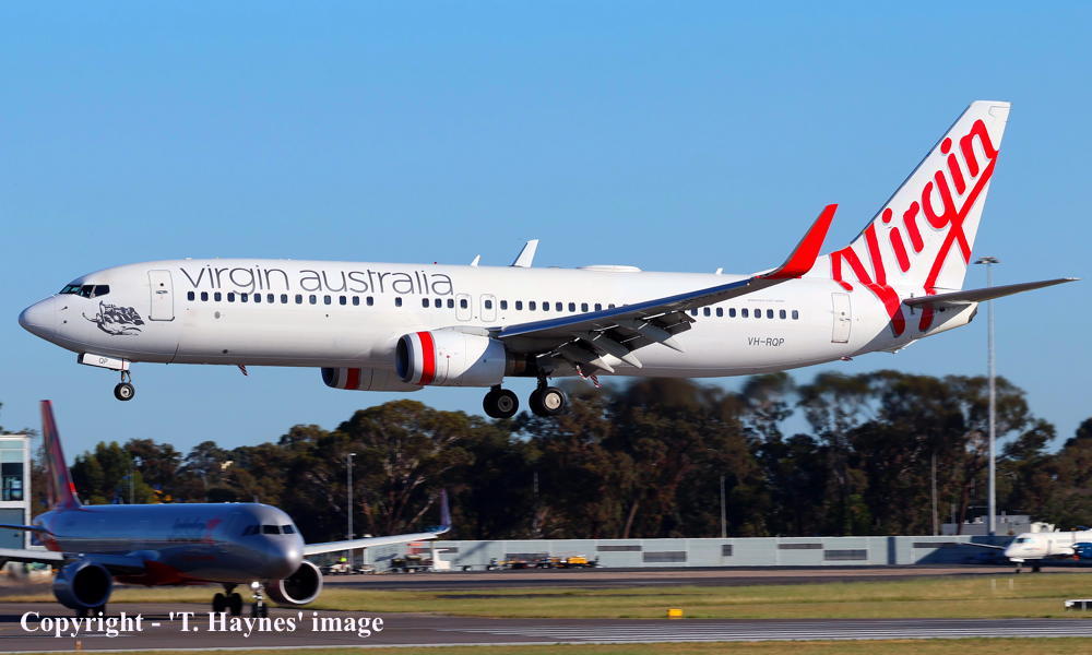 VH-RQP. Virgin Australia - in the standard livery at Adelaide West Beach Airport, March 22, 2025. (T. Haynes Copyright Image 4623-673.) |