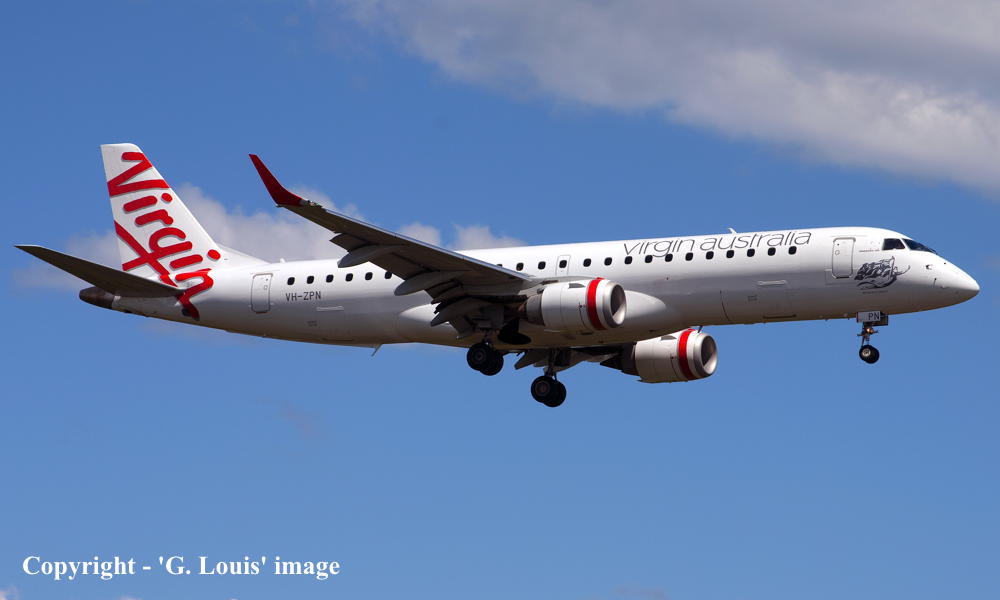 VH-ZPN. Embraer 190-100IGW. c/n 19000312. Was also registered as: 2-HZPN; ZS-YAU. |