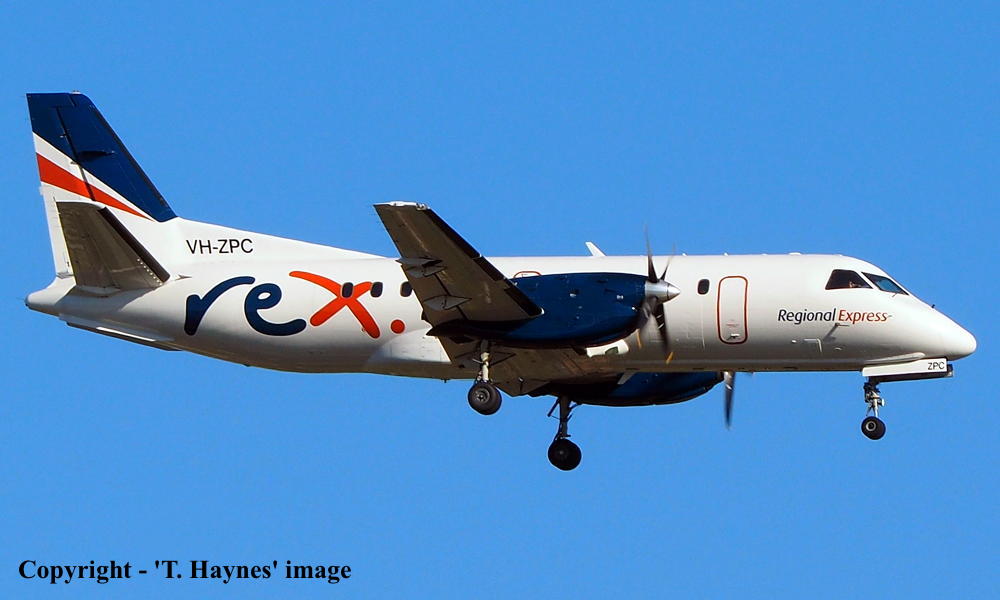 This aircraft was built by Saab Aircraft AB, Linkoping, Sweden - 1996 First flown with the test registration 'SE-B04' - October 02, 1996 Powered by General Electric CT7-9B engines of 1870 hp Entered onto the United States Aircraft Register as N404XJ - ? Leased to Mesaba Airlines as the registered operator - October 25, 1996 Leased to PenAir as the registered operator - March 11, 2010 Withdrawn from service by PenAir - December ?, 2018 It was prepared for lease to REX Regional Express - May 2019 Cancelled from the United States Aircraft Register - ? Entered onto the Australian Aircraft Register as VH-ZPC - May 03, 2019 Registered to Rex Investment Holdings Pty Ltd, Sydney Leased to Regional Express Pty Ltd, Sydney as the registered operator The aircraft was configured to seat 36 passengers Operated its first REX revenue service - ? Withdrawn from service and stored at Wagga Wagga - January 16, 2025 Current with Regional Express Airlines |