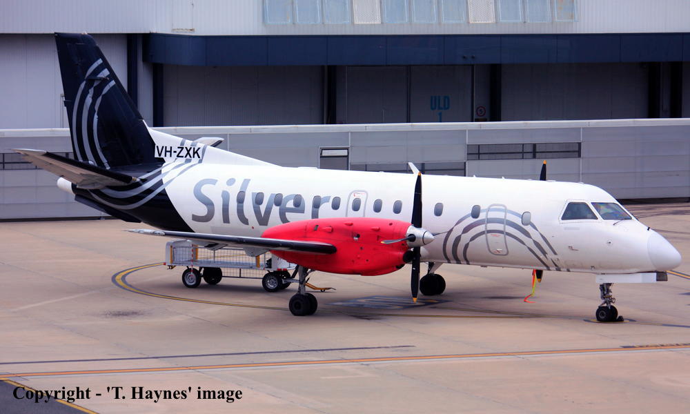 VH-ZXK. REX Regional Express - in the 'Silver Airways' livery at Adelaide West Beach Airport, March 23, 2016. (T. Haynes Copyright Image 1045-313.) |